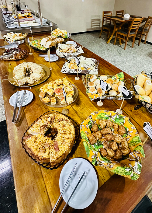 Suíte Executiva Compartilhe: Wifi gratuito; Estacionamento coberto gratuito; Café da manhã; Decks para relaxamento. Voltar para Acomodações